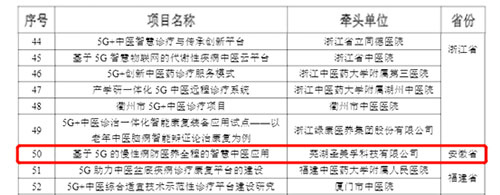 8月17日,中華人民共和國工業(yè)和信息化部官方網(wǎng)站發(fā)布了“5G+醫(yī)療健康應(yīng)用試點(diǎn)項(xiàng)目名單”,由蕪湖圣美孚科技有限公司牽頭,聯(lián)合蕪湖市中醫(yī)醫(yī)院、蕪湖市高科電子有限公司、安徽中醫(yī)藥高等專科學(xué)校、中國電信股份有限公司蕪湖分公司、天津理工大學(xué)五家單位共同申報(bào)的《基于5G的慢性病防醫(yī)養(yǎng)全程的智慧中醫(yī)應(yīng)用》項(xiàng)目成功入選此次應(yīng)用試點(diǎn)項(xiàng)目名單,也是安徽省入選“5G+中醫(yī)診療”方向名單的項(xiàng)目。